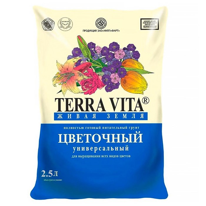 Грунт Terra Vita Живая Земля цветочный 50 л- полностью готовый питательный грунт, применяется для посадки и пересадки всех видов цветочных и декоративных культур, выращивания рассады и укоренения черенков.